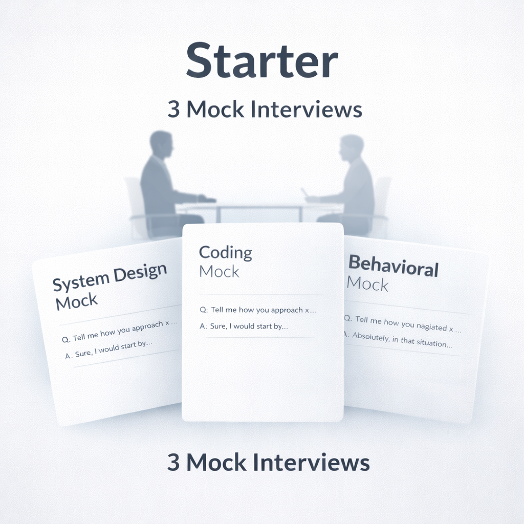 3 mock interview(coding/system design/behavioral/testing)